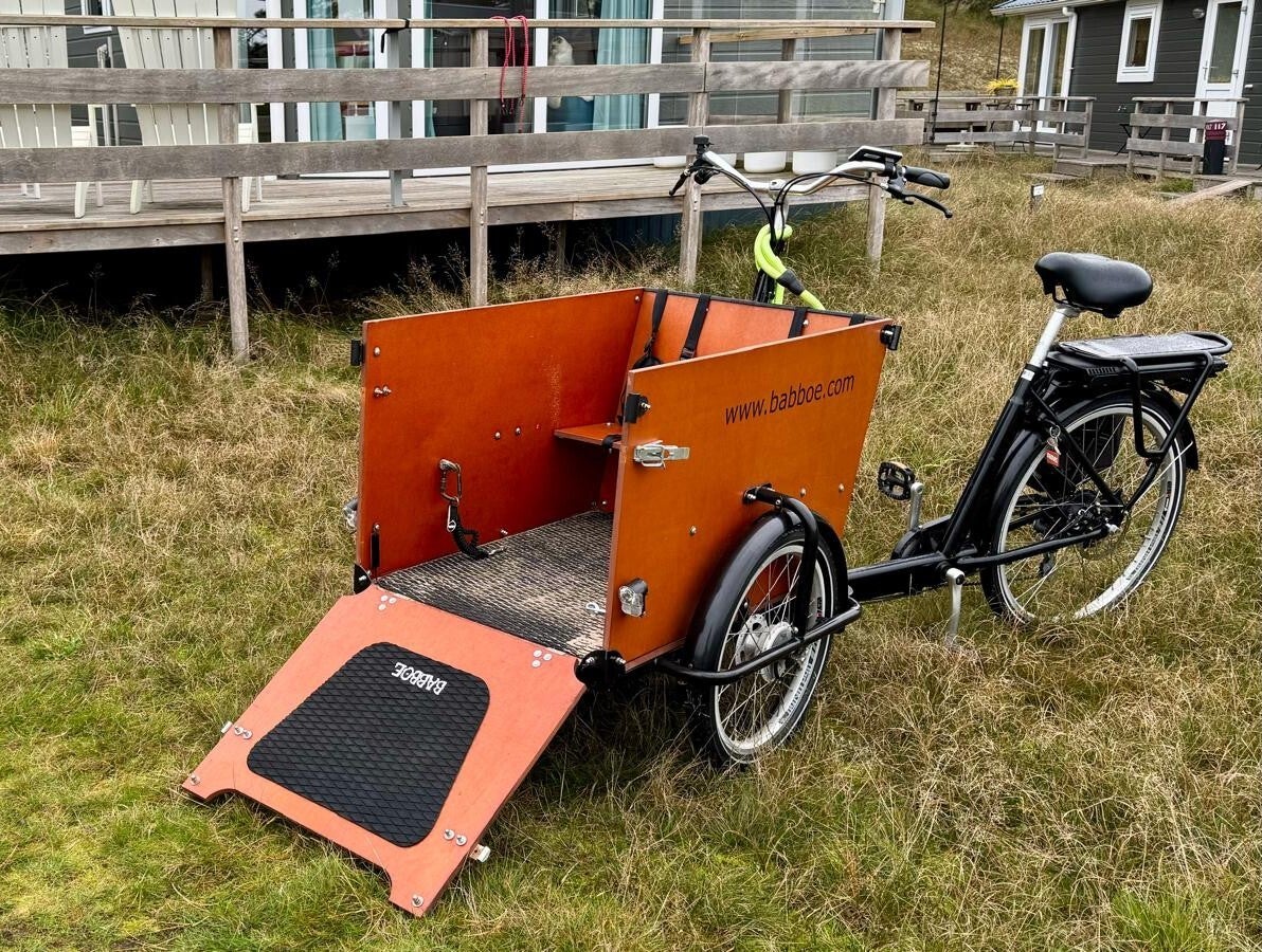 Achter het chalet staan fietsen klaar: een ruime e-bakfiets (ook ideaal om je hond mee te nemen), een comfortabele e-bike en een herenfiets. De batterijen voor de e-bikes worden opgeladen in de berging.
