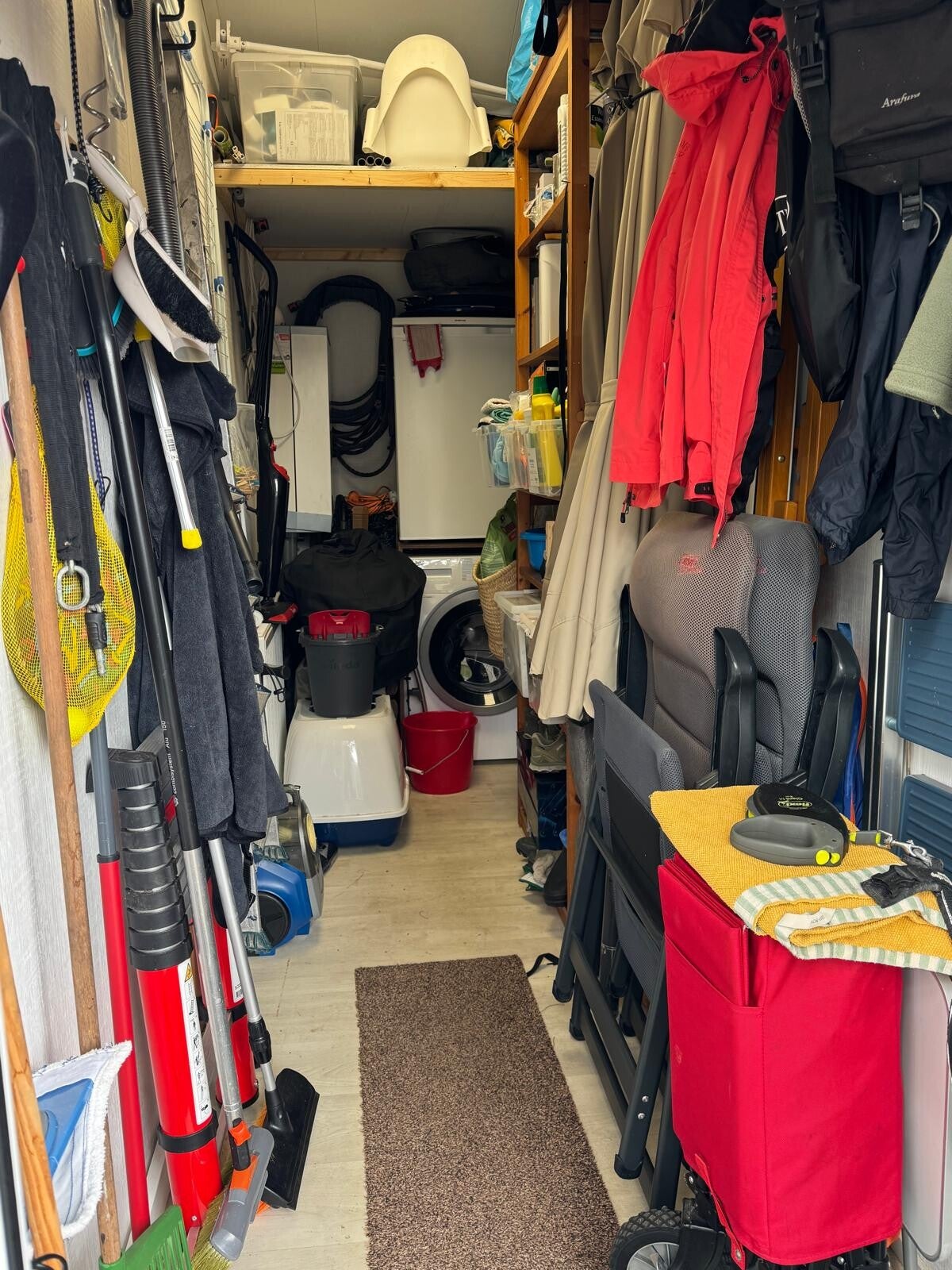 Onze berging is ontworpen met jouw comfort in gedachten. Hier vind je een extra koelkastje en een was/droogcombinatie. Daarnaast staat er een stellingkast met schoonmaakmiddelen en wat gereedschap voor kleine klusjes. Op de vliering zijn de stoelkussens voor buiten, een kinderstoeltje en een extra kinderbedje opgeborgen. Er staan 2 parasols en diverse buiten- en gezelschapsspelletjes zoals het leuke spel Kub. Alles is makkelijk bereikbaar en veilig opgeborgen.